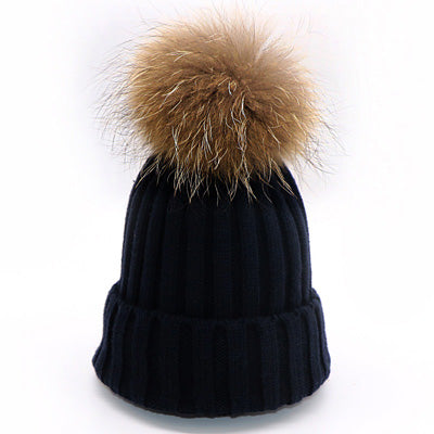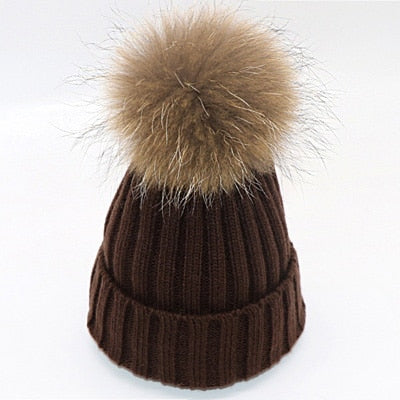 Arherigele Fur Ball Cap Pom Poms Winter Hat for Women Girl 's Hat Knitted Beanies Cap Thick Female Cap Women's Skullies Beanies