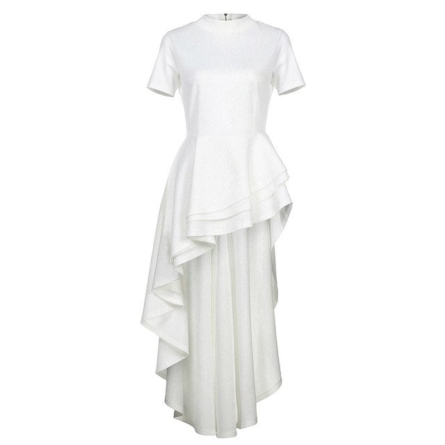 Free Ostrich Women Short Sleeve High Low Peplum Dress Bodycon Casual Party Club Dress Casual O NECK dress vestidos D0235