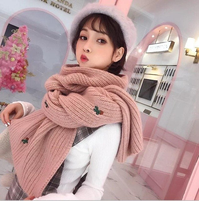 Mingjiebihuo New fashion scarf female winter Korean students wild knit long thick warm Harajuku style small fresh wool collar