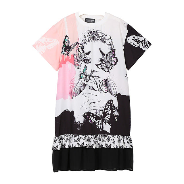 2018 Korean Style Summer Clothing Women Cute Wear Midi Cotton Dress Short Sleeve A-line Girls Casual Printed Loose Dresses 3586