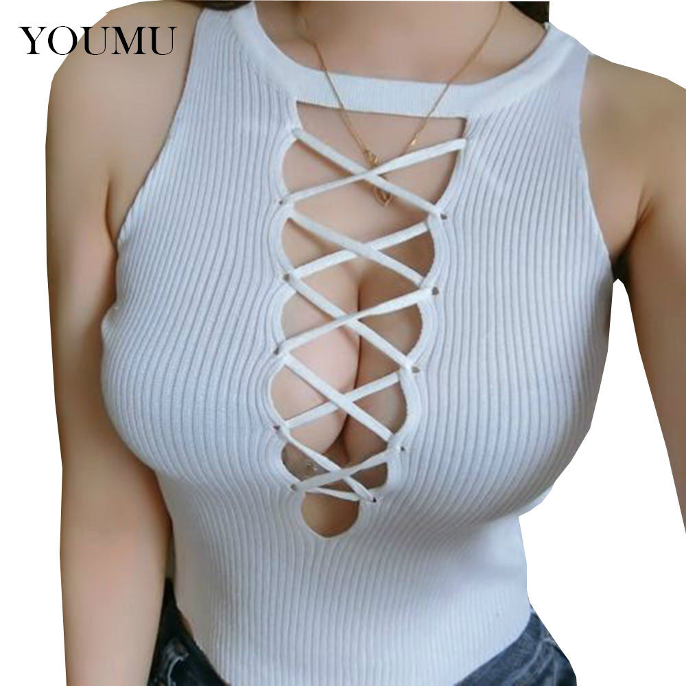 Sexy Lady T-Shirt Hollow Tank Tops Sleeveless Strappy Vest Crop Bralette Hot Girl Cross Bandage Fashion Both Sides Wear 200-096