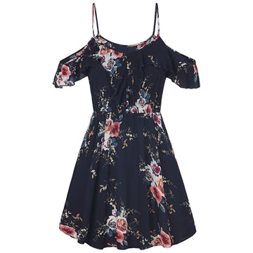 Timeson Summer Floral Print Women Chiffon White Dress Ruffle Off Shoulder Spaghetti Strap Female Tunic Girl Casual Beach Dresses
