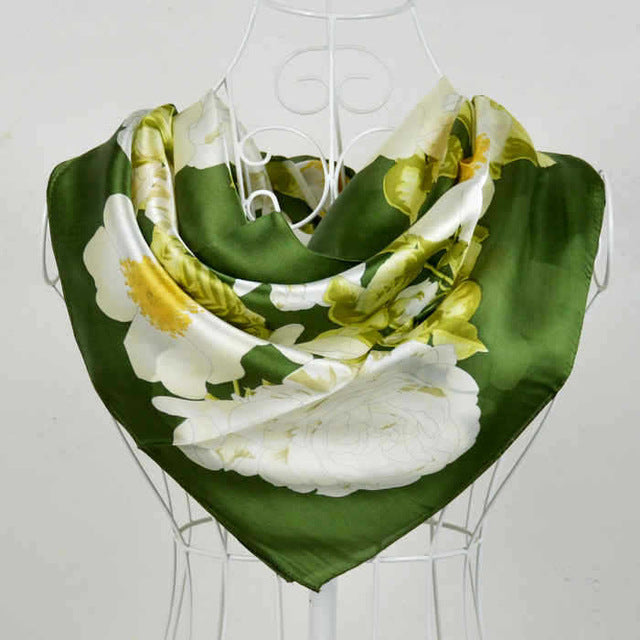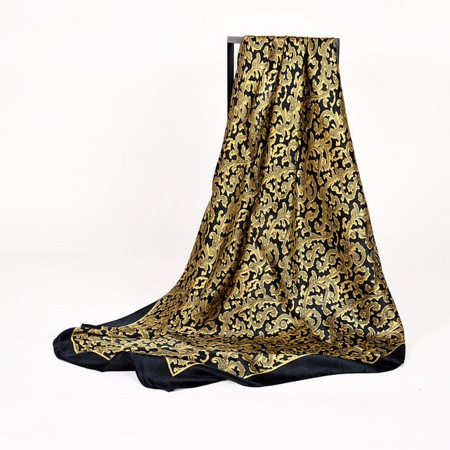 Women Black White 100% Silk Big Square Silk Scarves Printed Fashion Plaid Crepe Satin Scarf Shawl Spring Autumn Scarf Cape 90cm